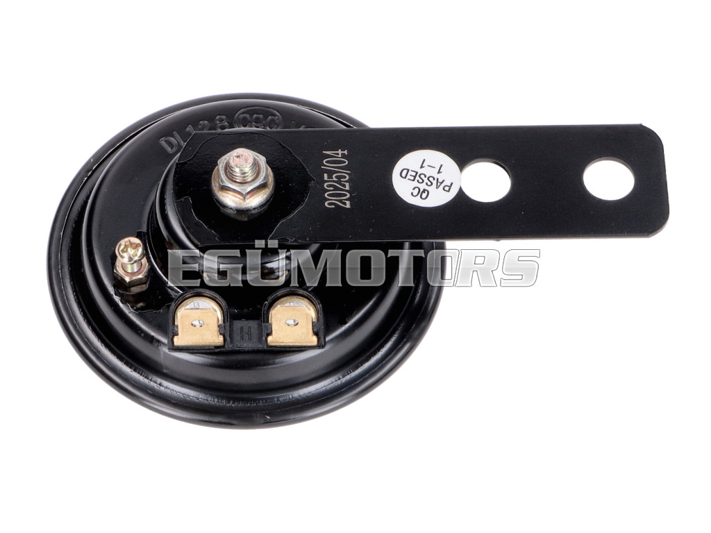 12 voltos rendszerű motorokhoz és robogókhoz használható kétpólusú kürt, duda.