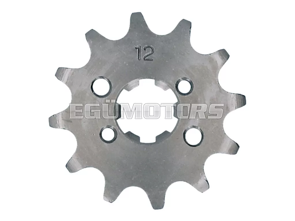 Erős, kedvező árú 12 fogas lánckerék 420-as lánchoz, alkalmas Piaggio / Derbi D50B0, EBE, EBS motorokhoz.