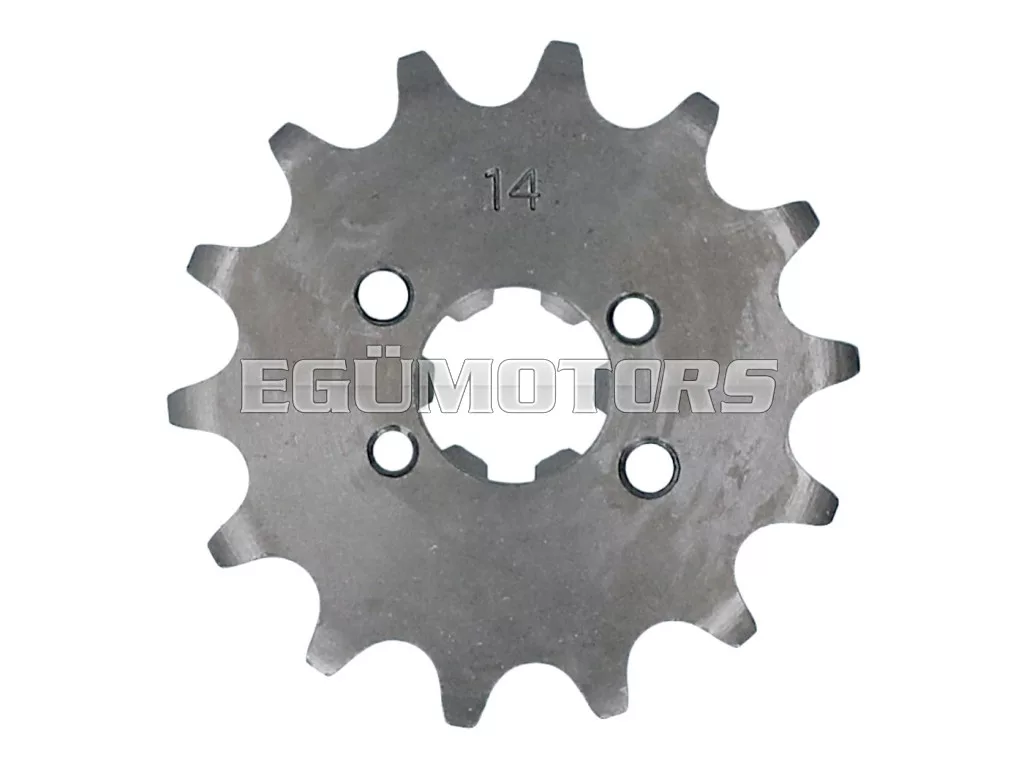 Erős, kedvező árú 14 fogas lánckerék 420-as lánchoz, alkalmas Piaggio / Derbi D50B0, EBE, EBS motorokhoz.