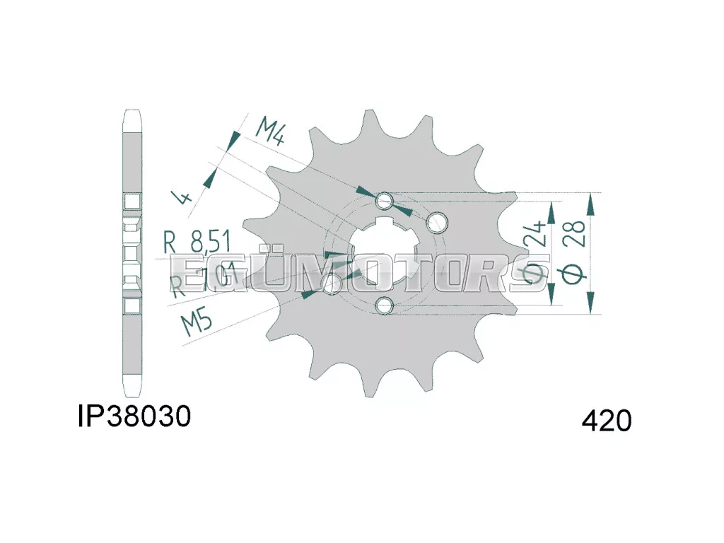 Nagyon tartós lánckerék stabil krómacélból, 15 fogas, 420-as osztással.