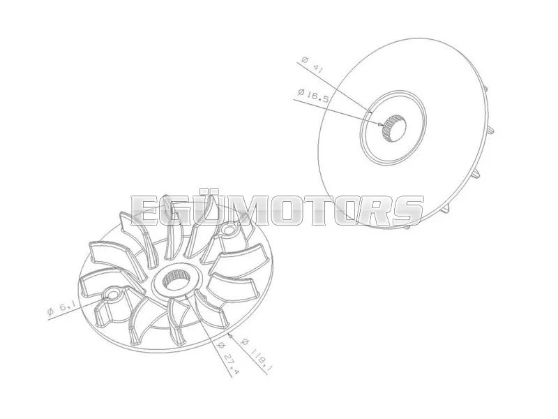 Meghajtó szíj / variátor szíjtárcsa lemez, alkalmas 125 és 150cc Kymco Dink, Grand Dink és Yager maxi robogókhoz.