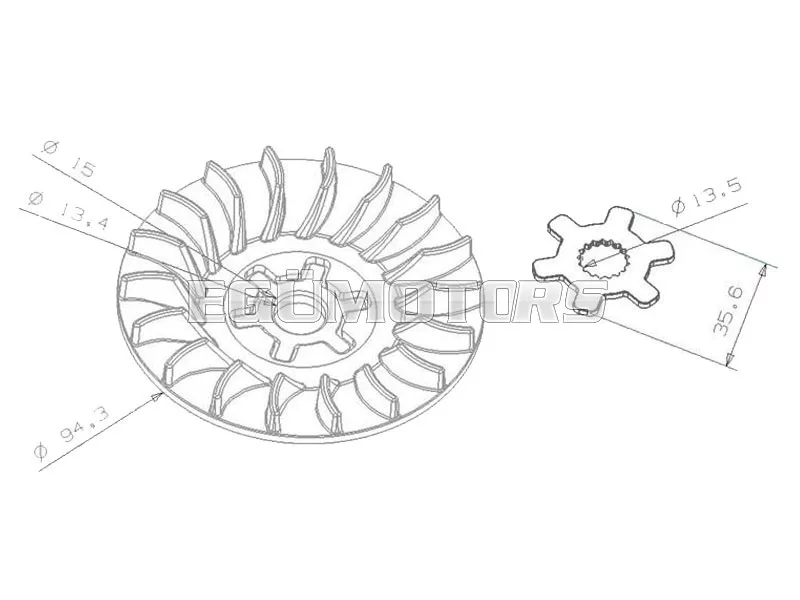 Variátor szíjtárcsa lemez Minarelli motorokhoz, 13 mm-es kúpos főtengellyel.