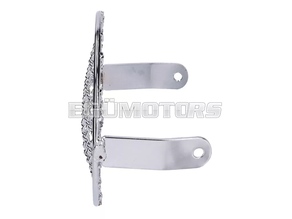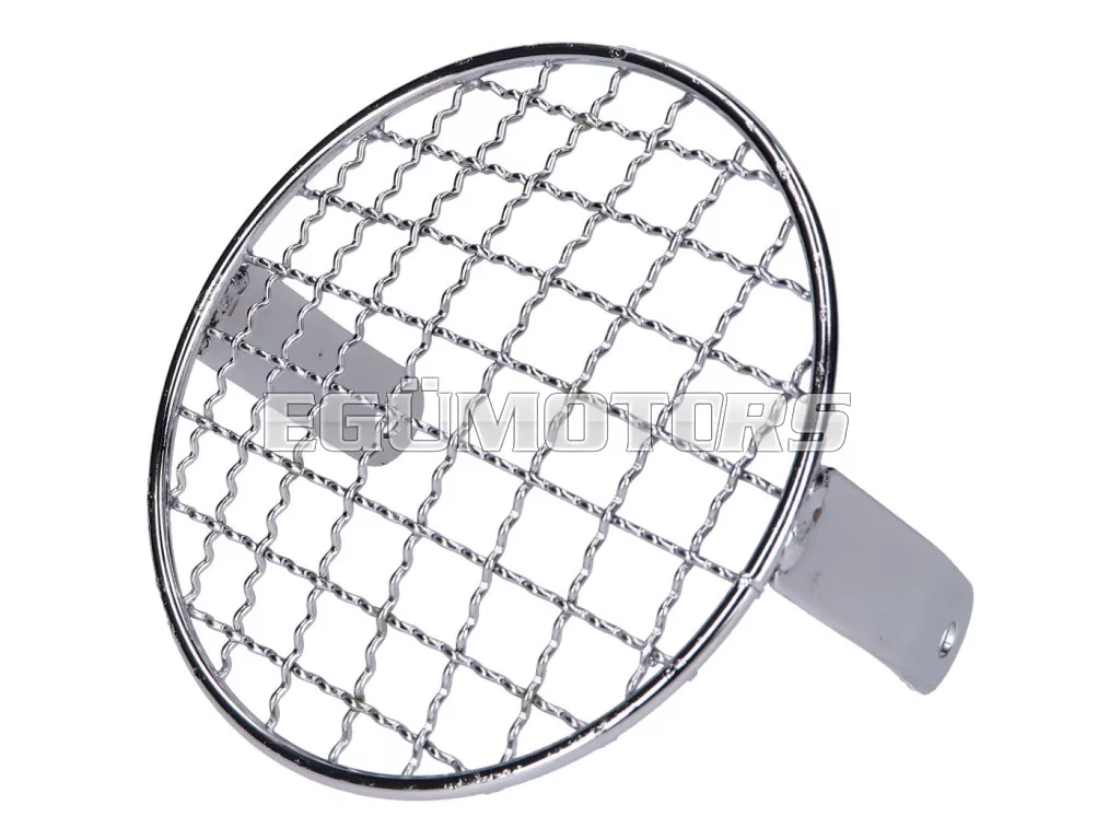 Fényszóró rács, kerek, krómozott, univerzális mopedekhez kerek fényszóróval.