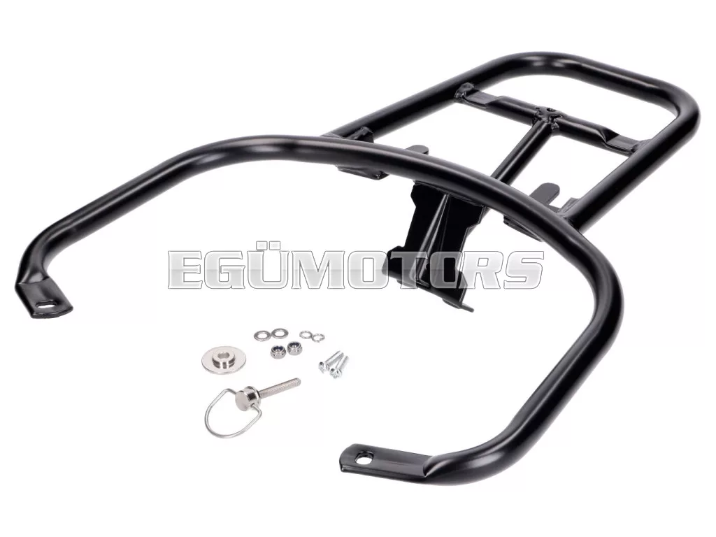 Fekete top case tartó / hátsó csomagtartó, alkalmas Vespa GT, GTV vagy GTS robogókhoz.