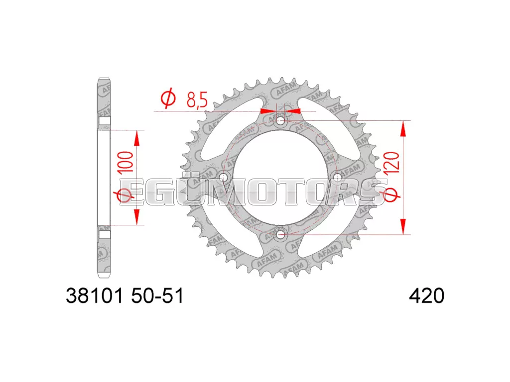 Piros, 50 fogú lánckerék 101 Octane-tól, 420-as láncosztás, alkalmas Beta RR 50 Supermoto váltós robogókhoz.