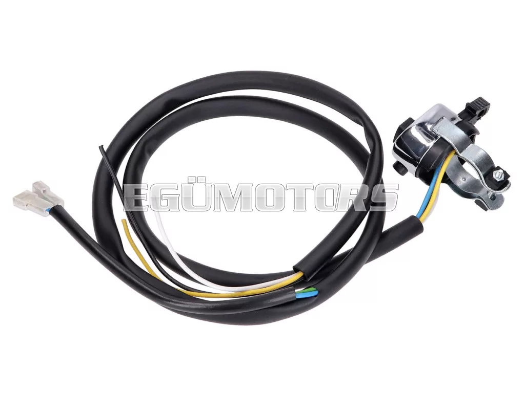 Kormánykapcsoló egység 3 funkcióval, krómozott, univerzális, 22 mm-es kormánnyal rendelkező mopedekhez.