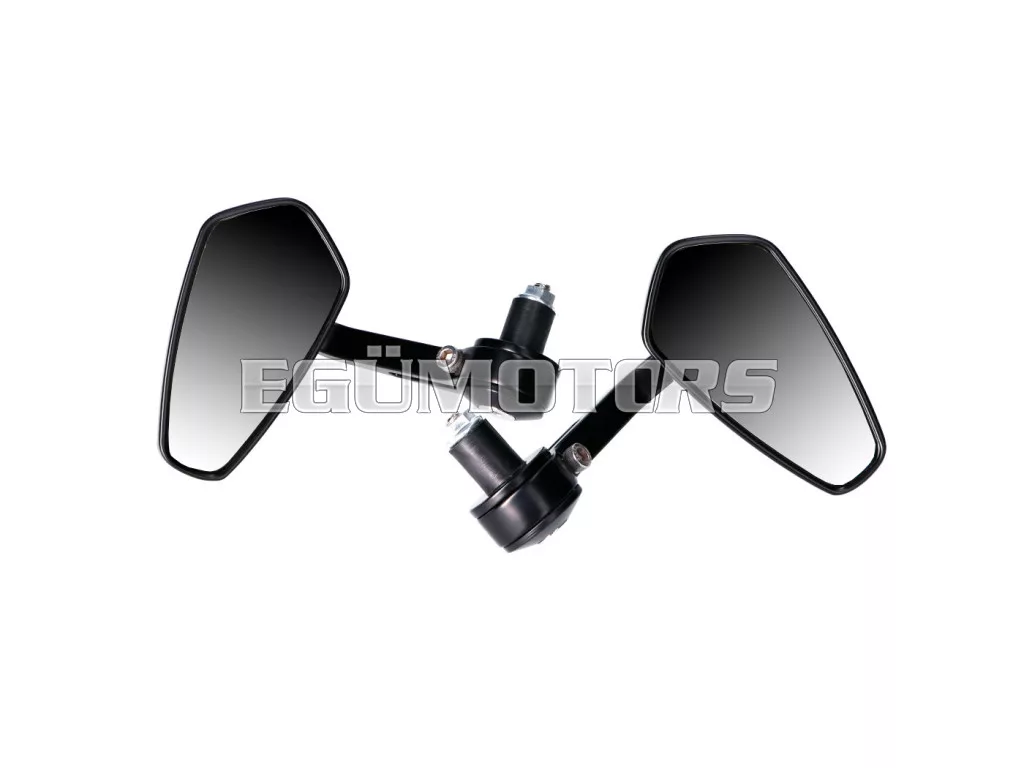 A tükrök kúp alakú gumirögzítéssel rendelkeznek, és 18 mm belső átmérőjű kormányvéghez alkalmasak.