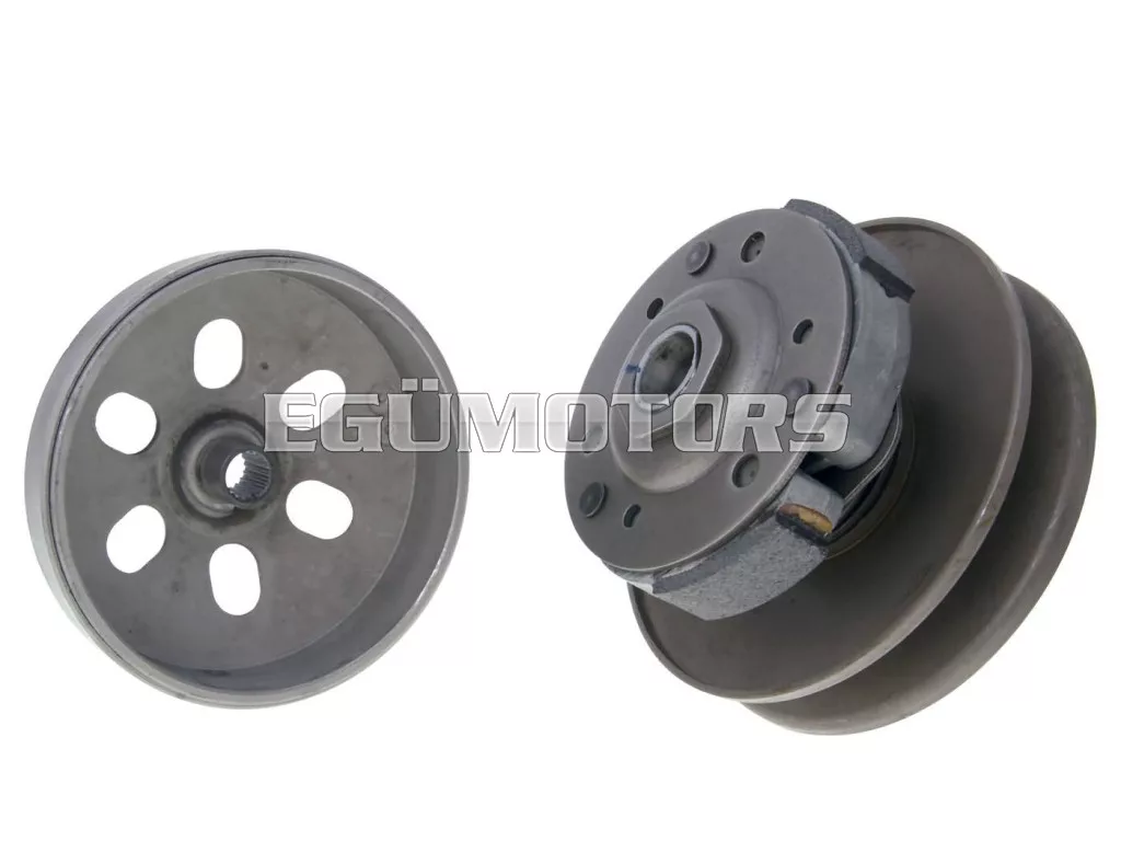 Komplett, előre összeszerelt kuplungegység, amely tartalmazza a hátsó nyomatékváltó szíjtárcsát, a nyomatékrugót, a kuplungharangot és a kuplungpofákat.