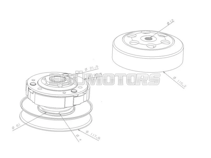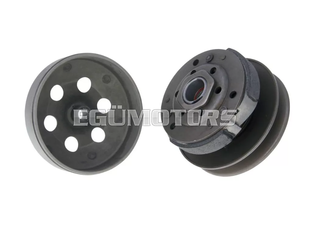 Komplett, előre összeszerelt kuplungegység, amely tartalmazza a hátsó nyomatékváltó szíjtárcsát, a nyomatékrugót, a kuplungharangot és a kuplungpofákat.