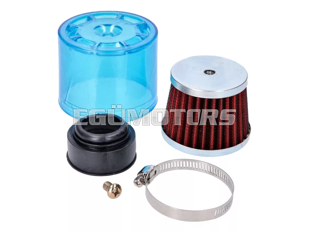 Megbízható légszűrő védősapkával, amely megóvja az esőtől és a túlzott zajtól. A szűrőelem fémmel erősített, így nedvesség esetén is stabil marad.