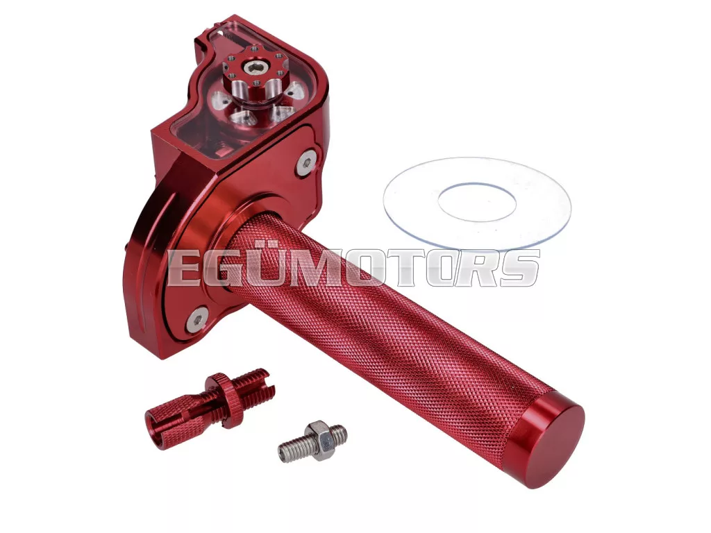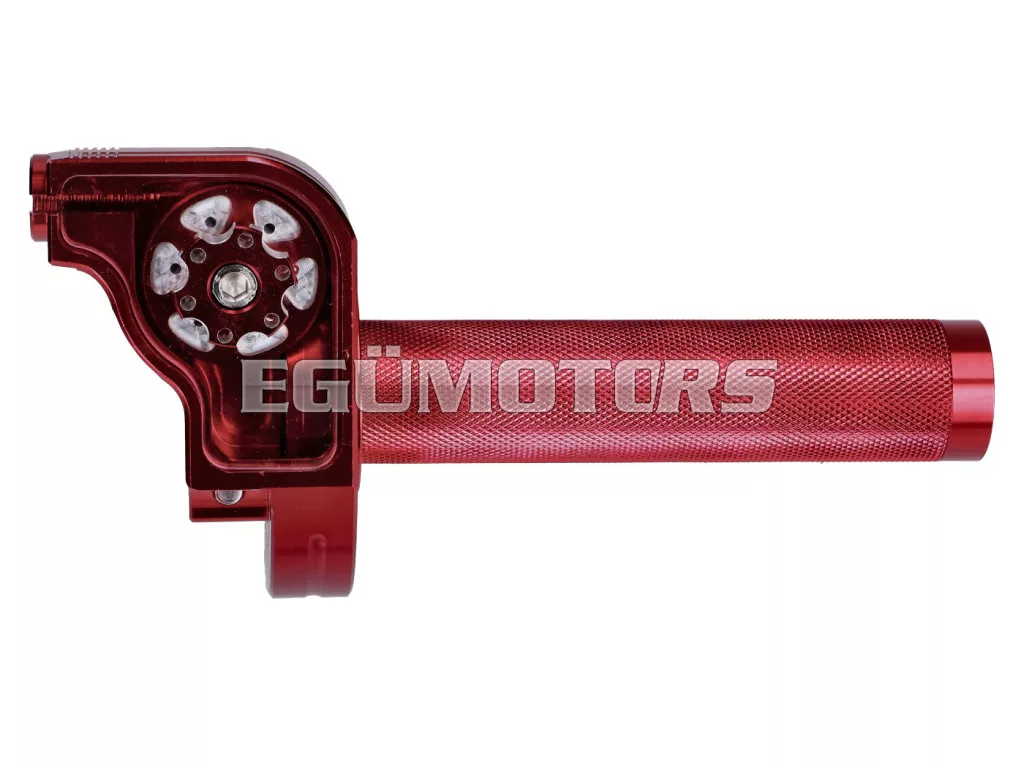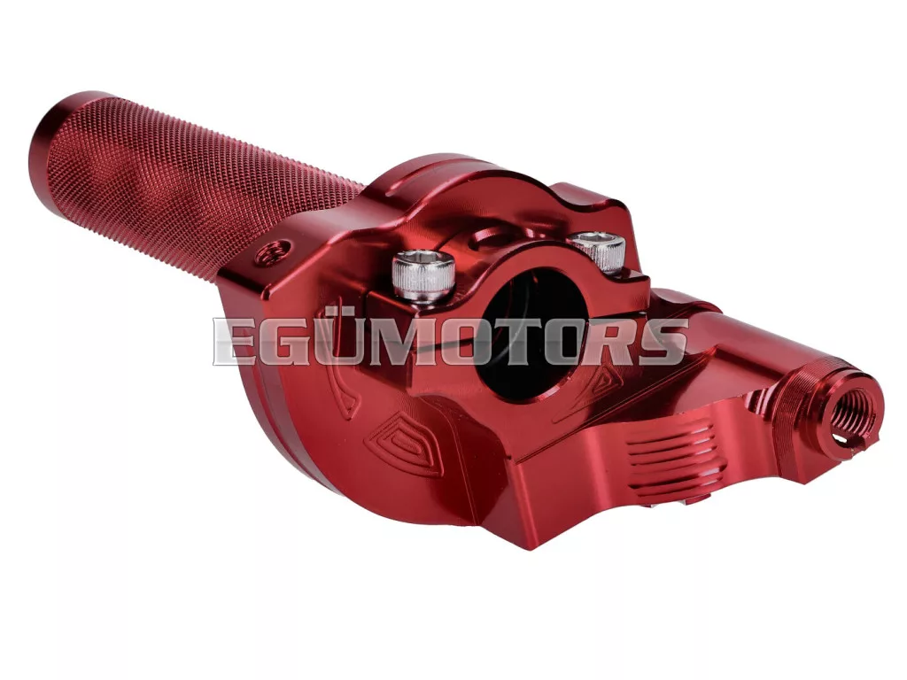 Teljesen CNC-marású, rövid löketű gázmarkolat, piros eloxált.