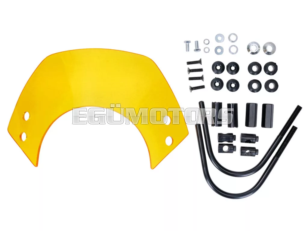 Sárga árnyékolású, rövid kialakítású szélvédő, alkalmas Vespa GT, GTS modellekhez.