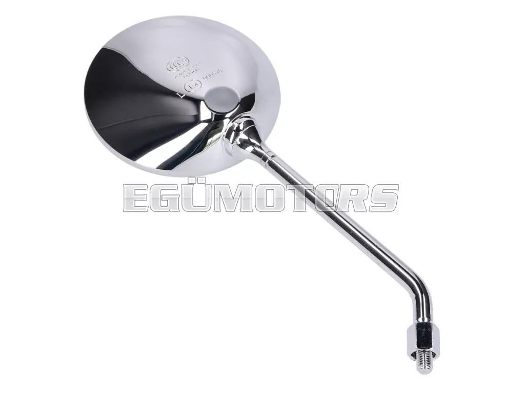 Jobb oldali visszapillantó tükör E-jelöléssel, alkalmas Piaggio, Vespa LX 50 2 ütemű / 4 ütemű, LX 125/150, LXV 50/125, Liberty 50 2 ütemű, Liberty 50/125/200 4 ütemű vagy Liberty RST 50/125/150 4 ütemű robogókhoz.