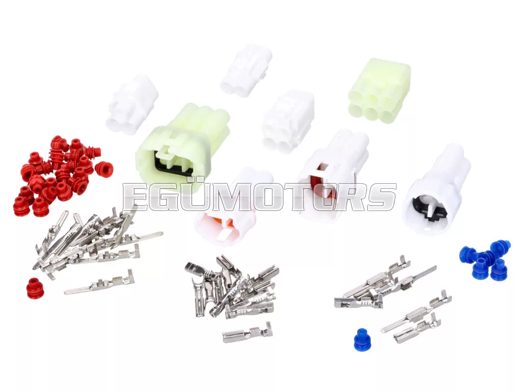 A szett minden csatlakozótípusból tartalmaz egy férfi és egy női csatlakozót.