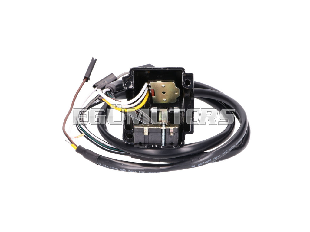 Felhelyezett kapcsolóegység irányjelző kapcsolóval, tompított / távolsági fényszóróval és pár gombbal, kábelköteggel.
