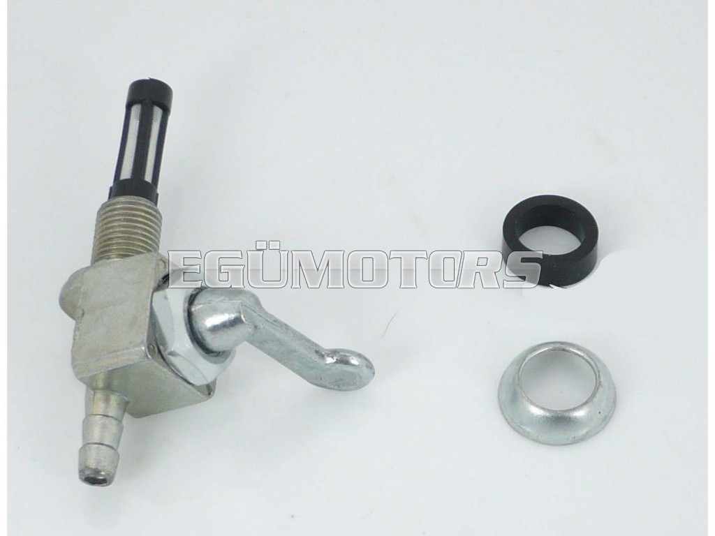 Benzincsap alsó kimenettel, M10x1, alkalmas különböző moped és mokick modellekhez, például Peugeot 103, Mobylette, Motobecane, Garelli, stb.