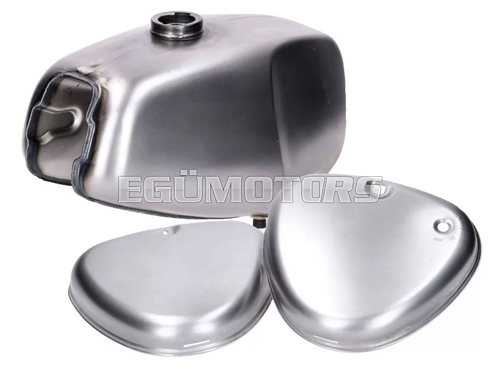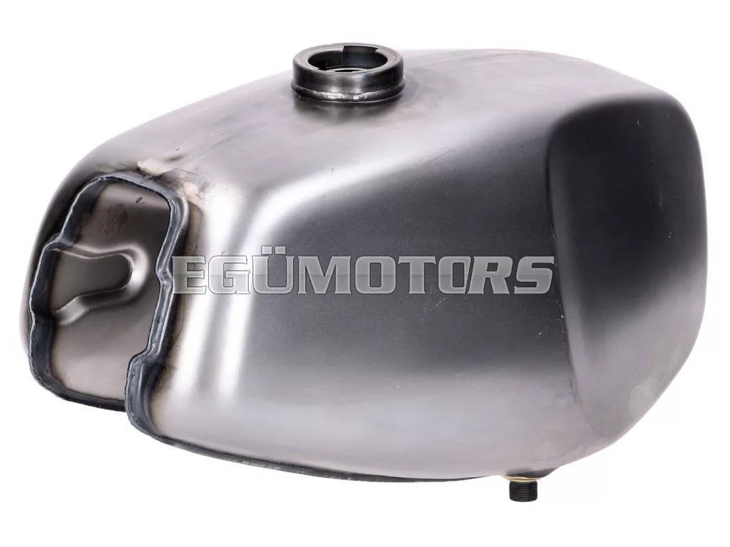 Ez a benzintank festetlen, és formájában, valamint térfogatában megfelel az eredeti tanknak. A benzincsap csatlakozásnál a helyes függőleges elhelyezésre ügyeltek, a csatlakozás forrasztott.