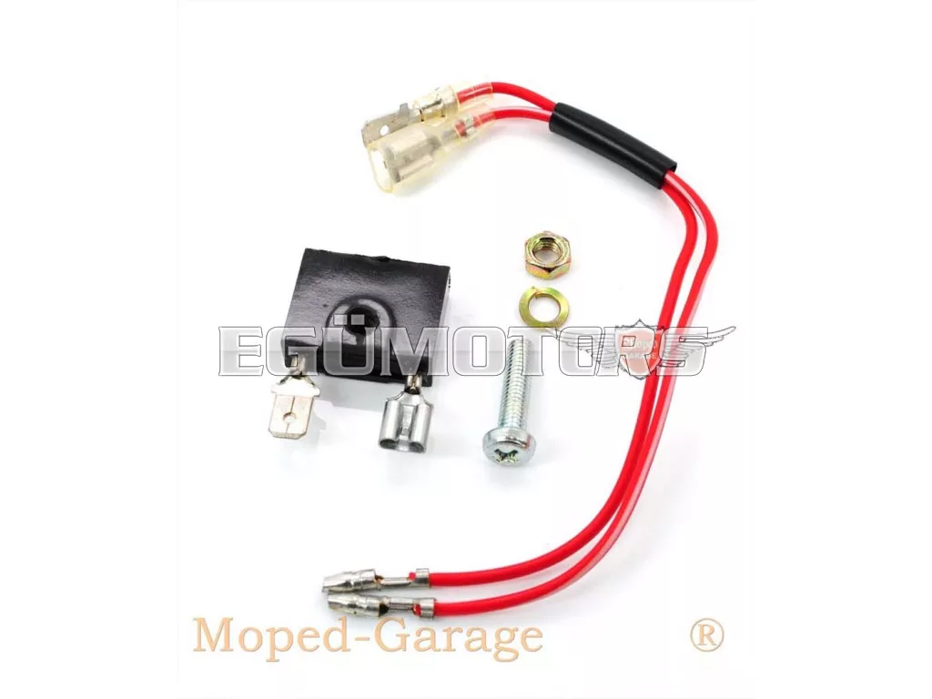 Egyenirányító csatlakozókábellel, alkalmas Yamaha DT 50, 80 M és RD 50, 80 M Mokick modellekhez.