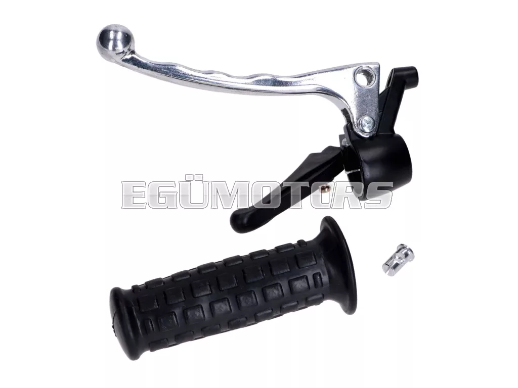 Komplett fékkar szerelvény, felszerelésre kész, kiváló minőségben, bal oldali gumimarkolattal és berúgókar fogantyúval.