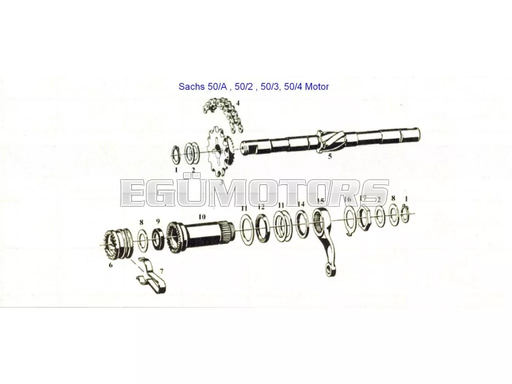 Alkalmas Hercules, Miele, DKW, KTM, Rixe mopedhez, Sachs 50/2, 50/A, 50/3 B KF S, 50/3 KF S, 50/3 LF S, 50/3 MAKF SF, 50/3 MAKF X, 50/3 MLFB, Sachs 50/4 LK H, 50/4 LK S, 50/4 ML FB, 50/4 MLKA X, 2-, 3- és 4-sebességes motorokhoz.