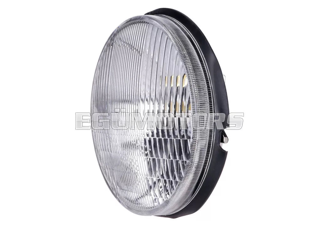 Kiváló minőségű Bosatta fényszóró betét, alkalmas Piaggio Vespa PK 50–125 XL, S, SS, ETS robogókhoz.