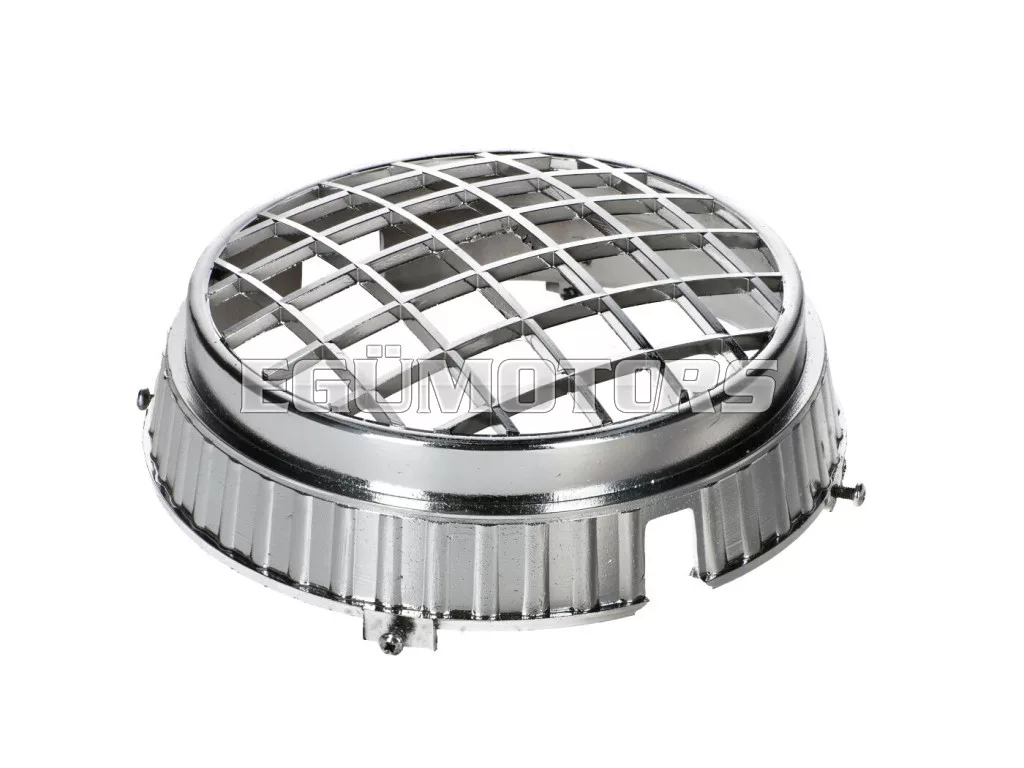 Műanyag védőrács / burkolat króm hatással az első fényszóróhoz, alkalmas Simson S50, S51, S70 modellekhez.
