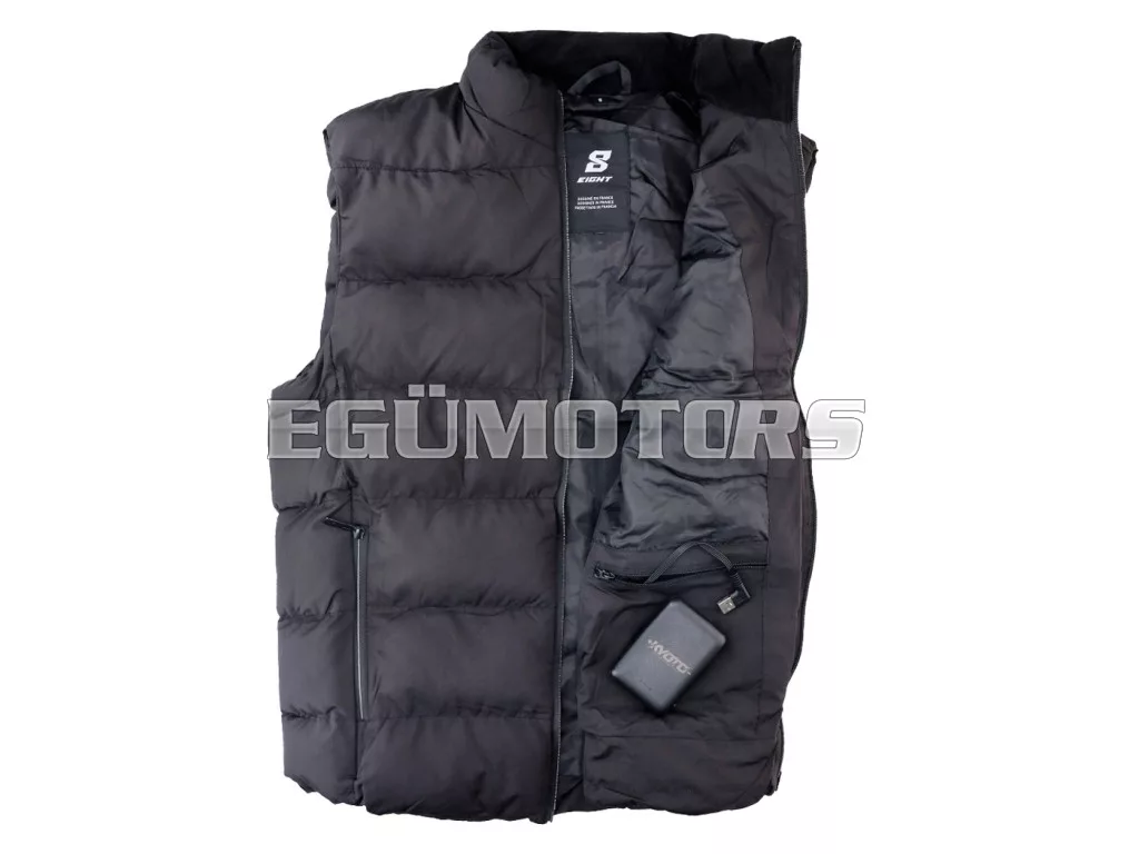 Fűthető mellény, "Magma", Eight, fekete - tartozékként 10.000 mAh kapacitású power bankkal