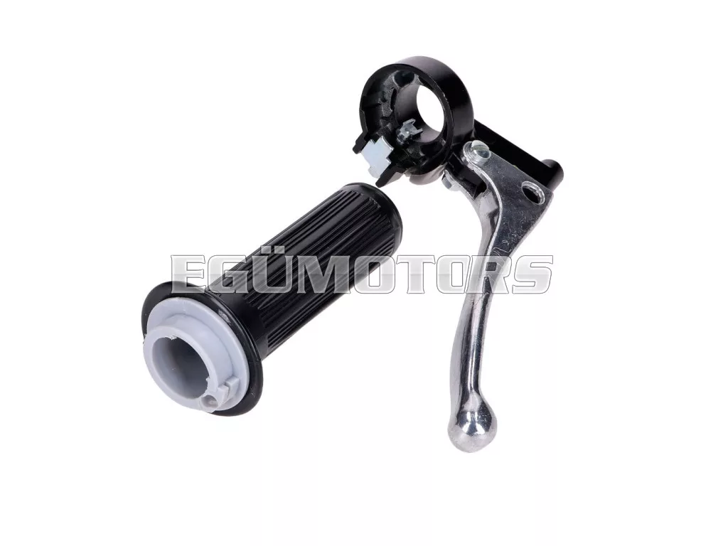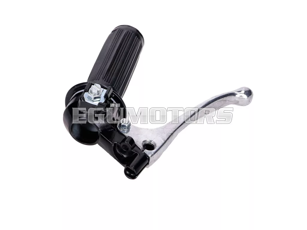 Gázmarkolat szerelvény fekete bordázott gumimarkolattal és teljes alumínium kuplungkarral.