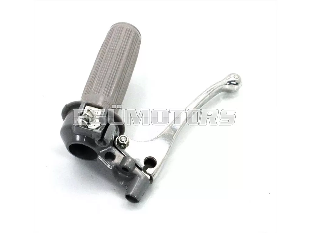 Gázmarkolat szerelvény szürke bordázott gumimarkolattal és teljes alumínium fékkarral.