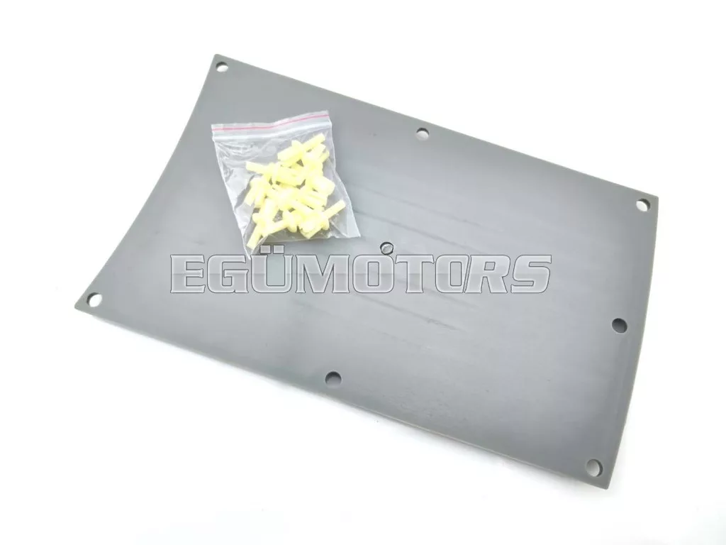 Szürke csomagtartó szőnyeg fehér rögzítőkapcsokkal, kiváló minőségben.