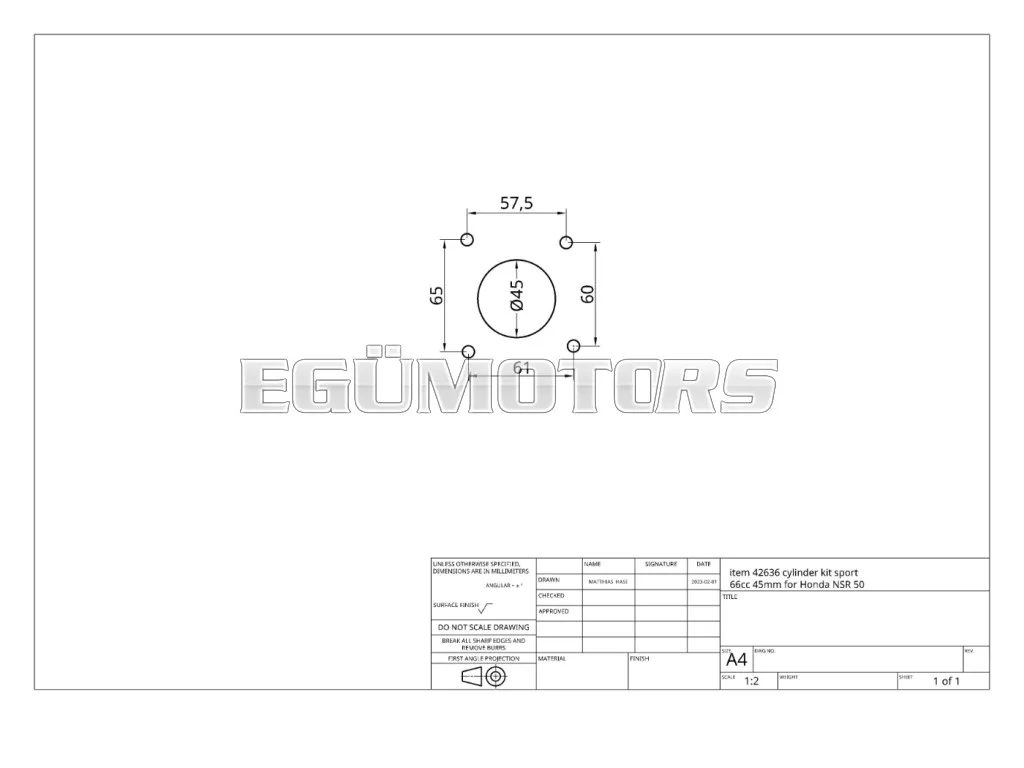 Tuning sport öntöttvas hengerkészlet 66cc-es kapacitással és 45mm furattal.