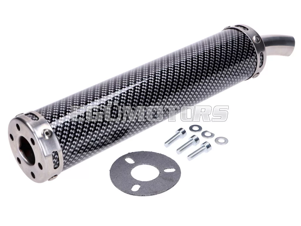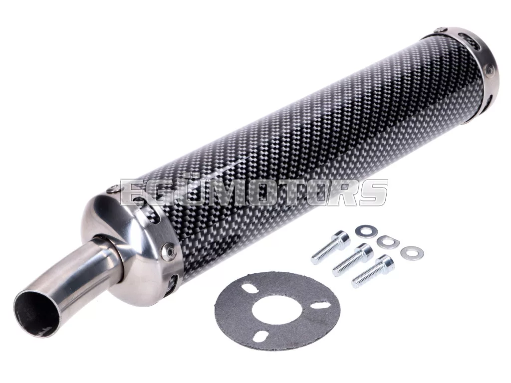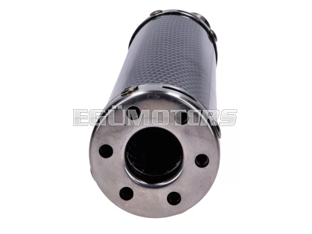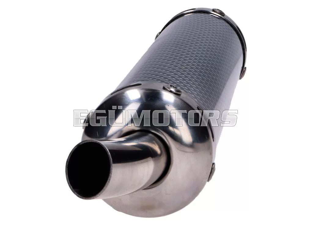 Kiváló minőségű hátsó kipufogódob karbon borítással. Univerzális.
