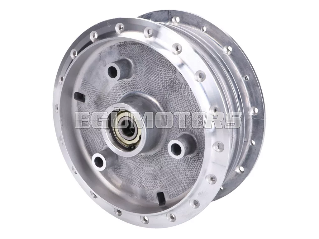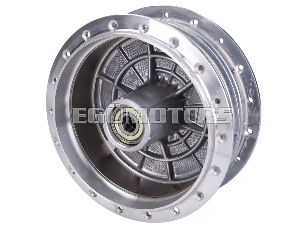Kerékagy küllős kerekekhez. Alumíniumból CNC-vel megmunkált, megerősített küllőtartó kialakítással.