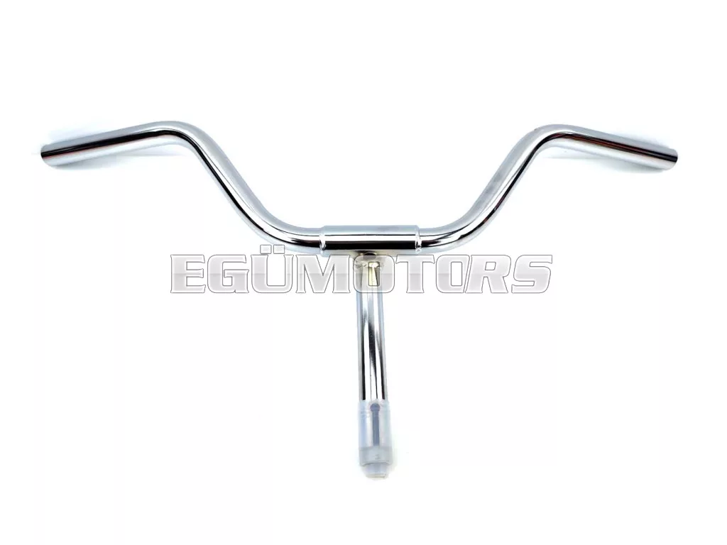 Krómozott kormány rúddal, különböző mopedekhez, robogókhoz és mokickhoz, például Rixe, Miele, DKW, Hercules, Göricke, Gritzner, Transportmoped és Express modellekhez.