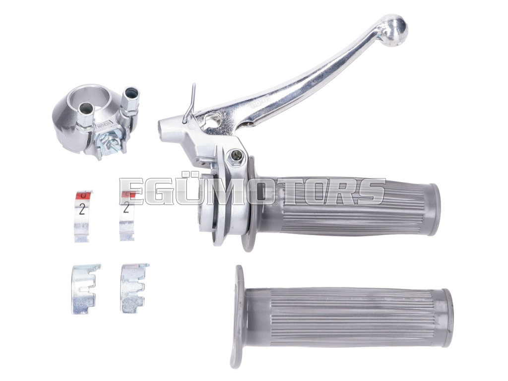 Teljes kormánymarkolat készlet kuplungkarra, alkalmas 2 sebességes vagy 3 sebességes manuális váltású robogóhoz, például Puch, Sachs vagy Zündapp modellekhez.