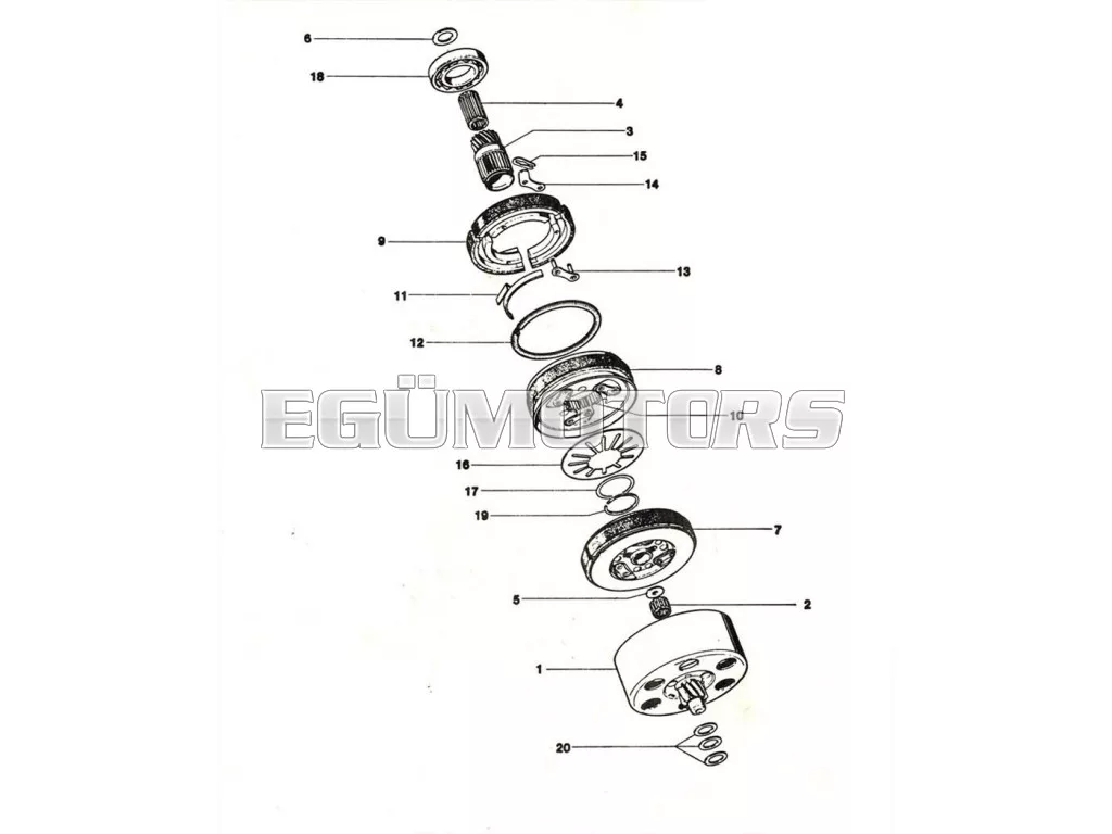 Kuplungcsapágy, alkalmas Kreidler MF 2 MP robogóhoz. OEM szám összehasonlítás céljából: 00.60.52 (a rajzon a 18-as pozíció).