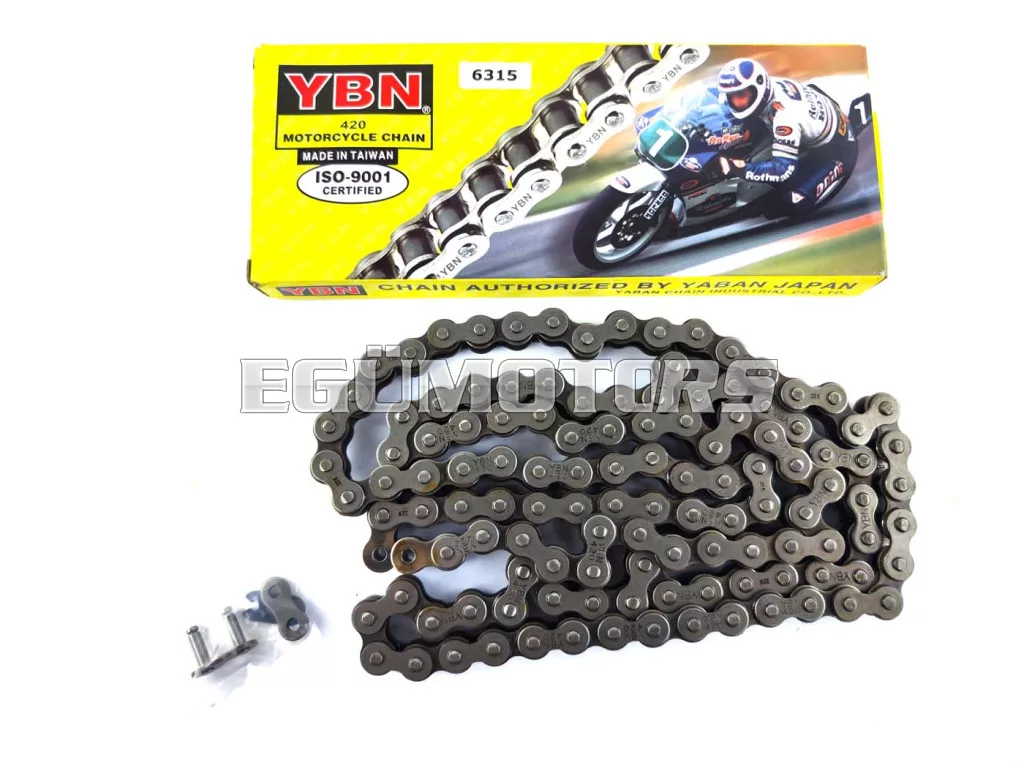 KMC lánc, 420-as típus, 122 szemes, ISO 9001 tanúsítvánnyal rendelkező gyártótól.