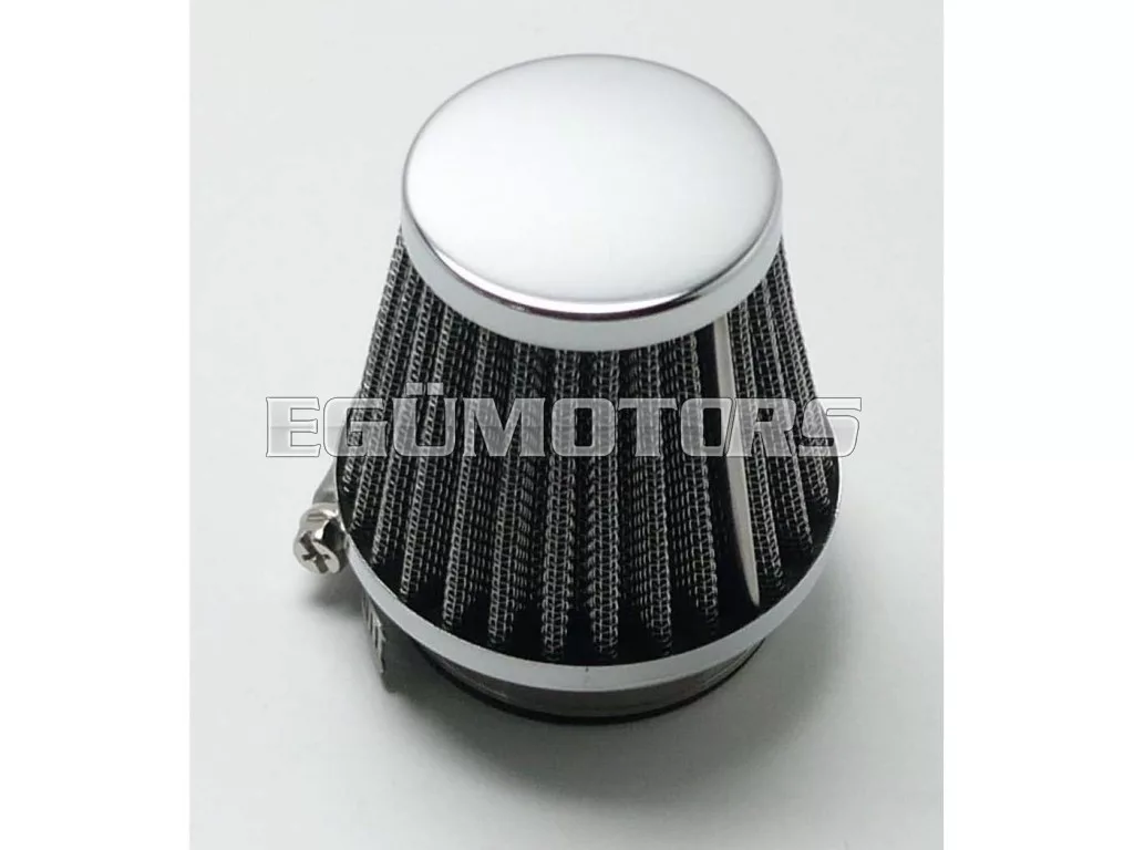 Kipufogó tuning légszűrő 48mm csatlakozással, számos karburátorhoz megfelelő.