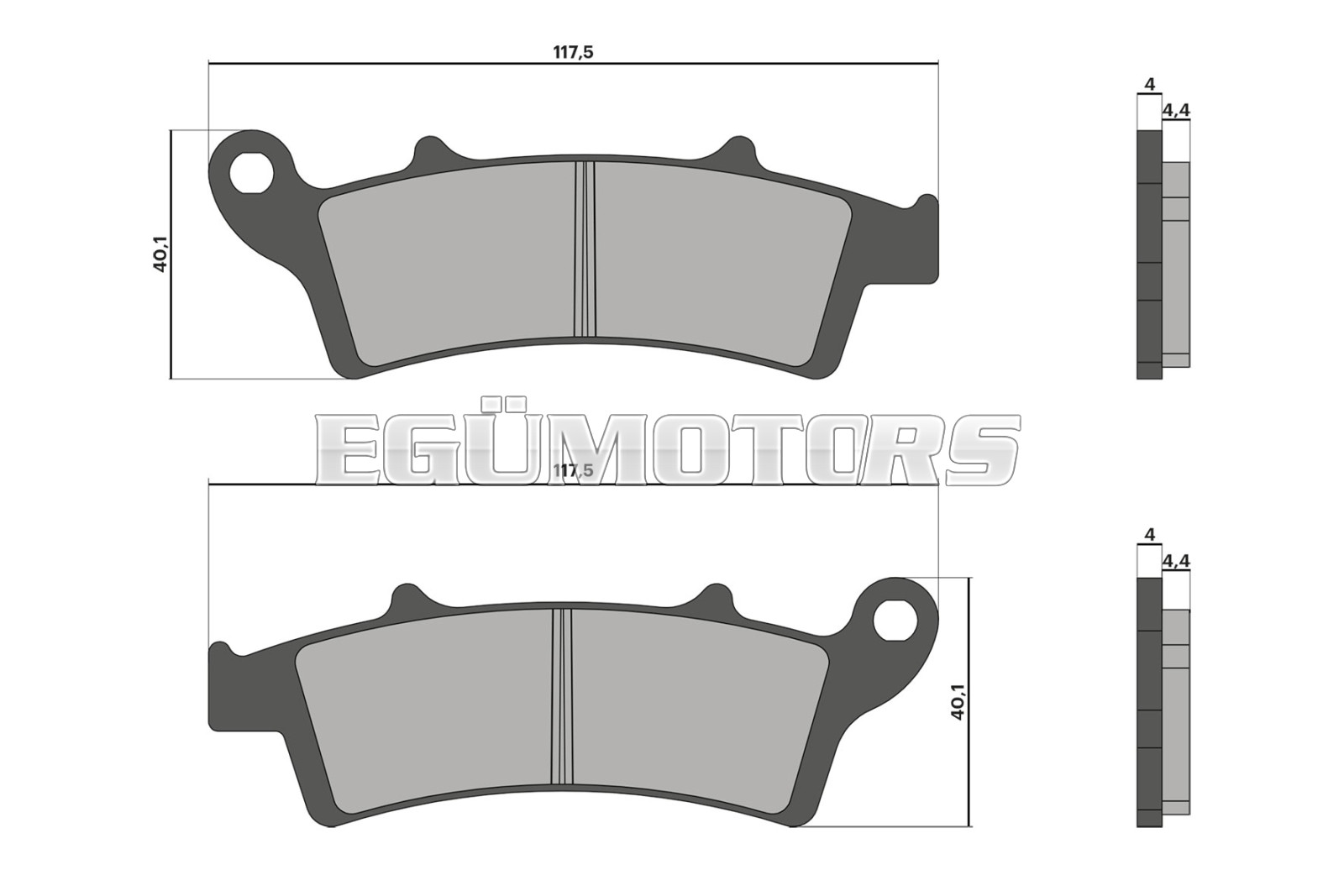 Pads with sintered friction material have the highest friction coefficient and for this reason they guarantee shorter stopping distances with breathtaking decelerations. Their peculiarity consists in being able to keep a stable performance regardless of temperature and weather conditions. The friction material is obtained through a sintering process of metal dusts and other copperbased elements. The result is a compound able to enhance the braking power without reducing the lifetime of the pads. |