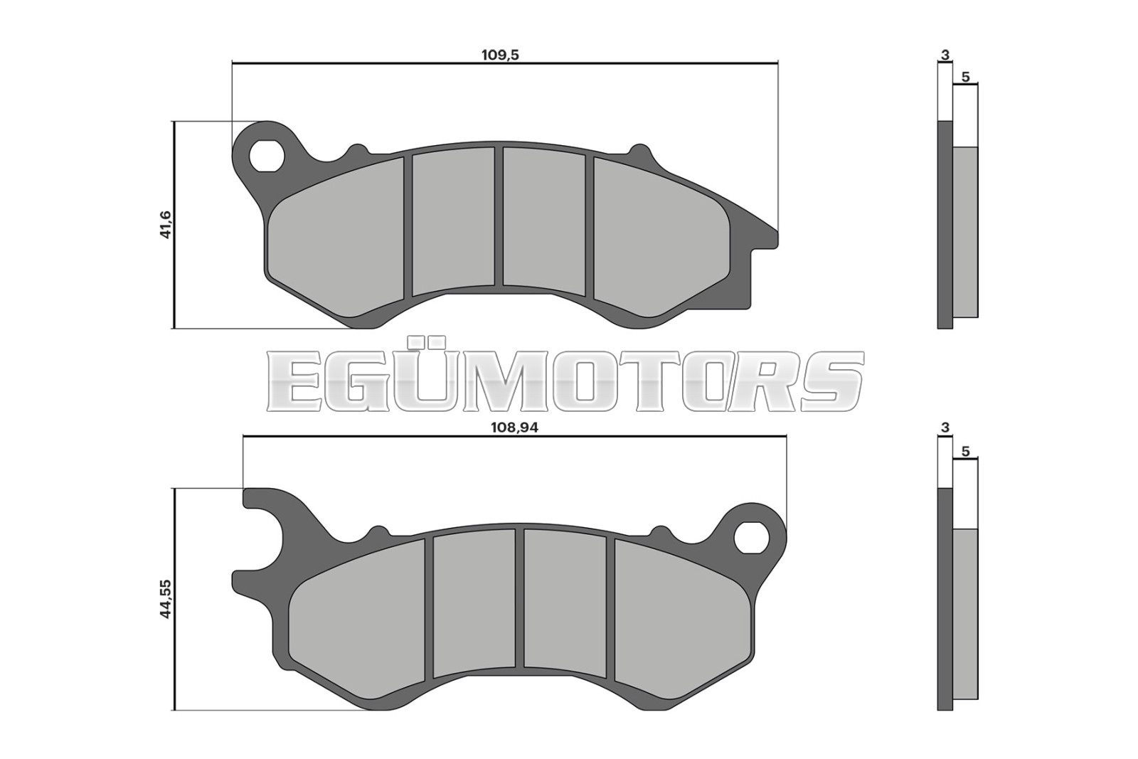 Pads with sintered friction material have the highest friction coefficient and for this reason they guarantee shorter stopping distances with breathtaking decelerations. Their peculiarity consists in being able to keep a stable performance regardless of temperature and weather conditions. The friction material is obtained through a sintering process of metal dusts and other copperbased elements. The result is a compound able to enhance the braking power without reducing the lifetime of the pads. |
