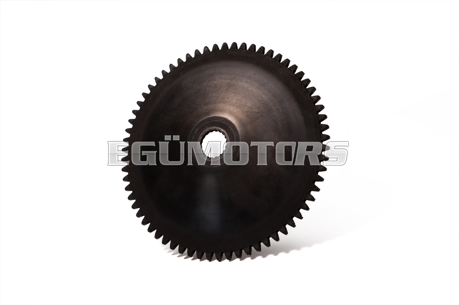 A half pulley with integrated geared teeth on the external diameter designed to engage with an electric start motor.