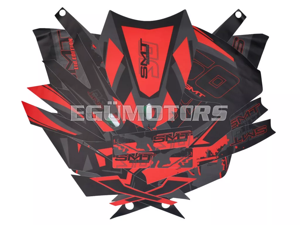 Matt fekete-piros-szürke matrica készlet, alkalmas 2018-tól gyártott Gilera SMT 50 modellekhez.