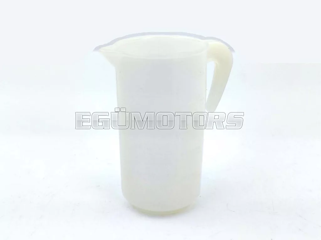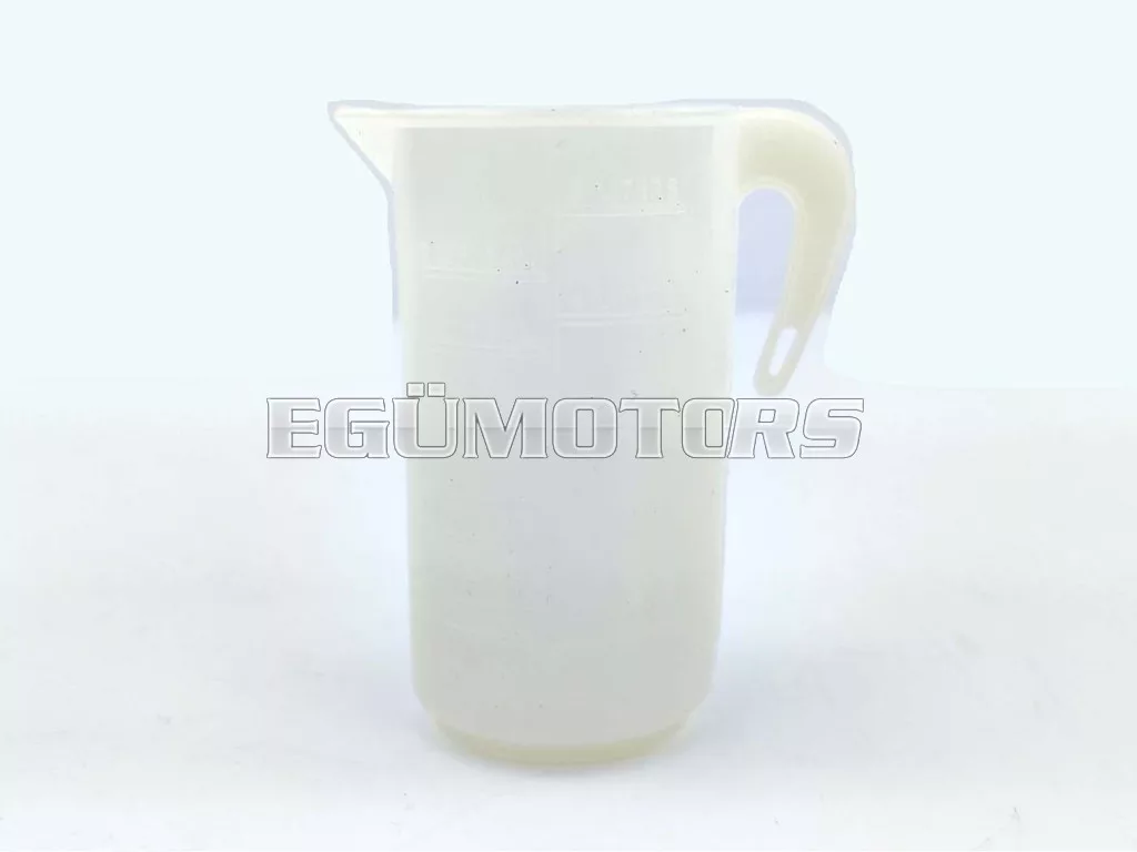 Keverék készítéséhez való mérőpohár, 5 literig terjedő skálával 1:50 arányú keverékhez.