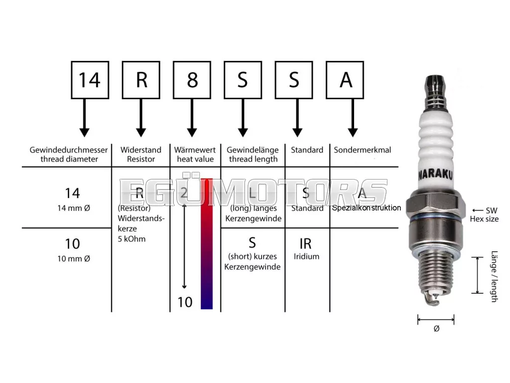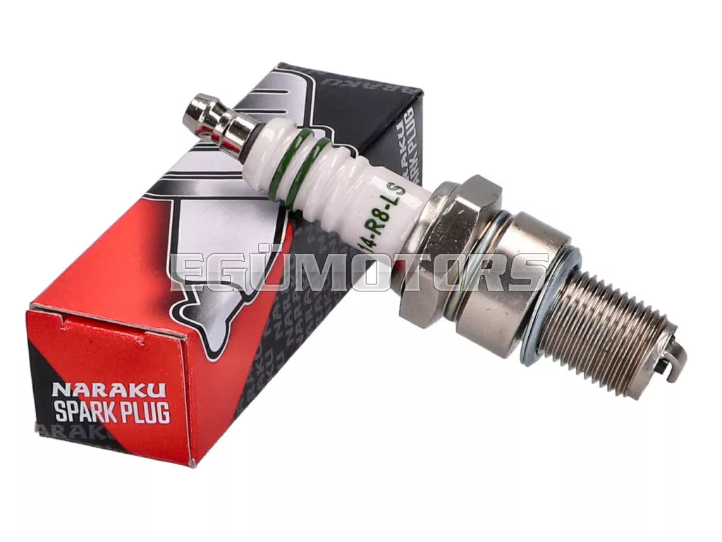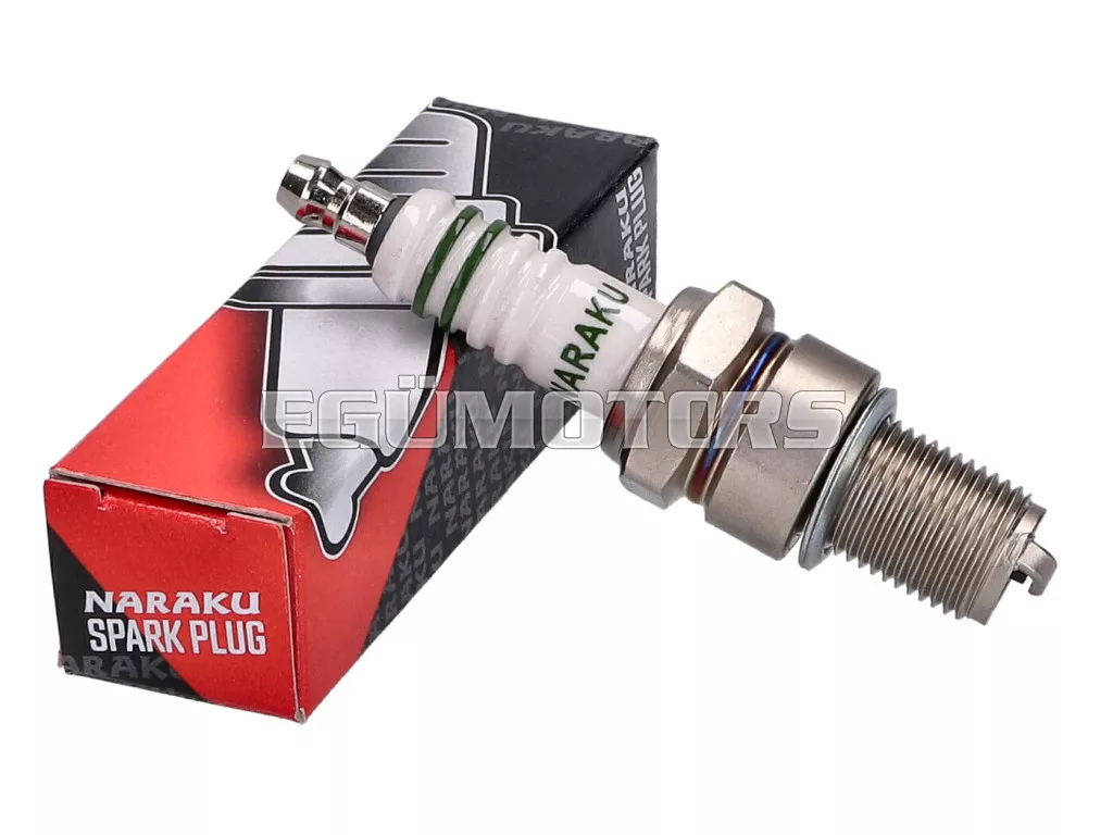 Naraku gyújtógyertya, amely megegyezik a gyárilag felszerelt alkatrésszel. A hőérték és a gyertya kialakítása az eredetivel megegyező.