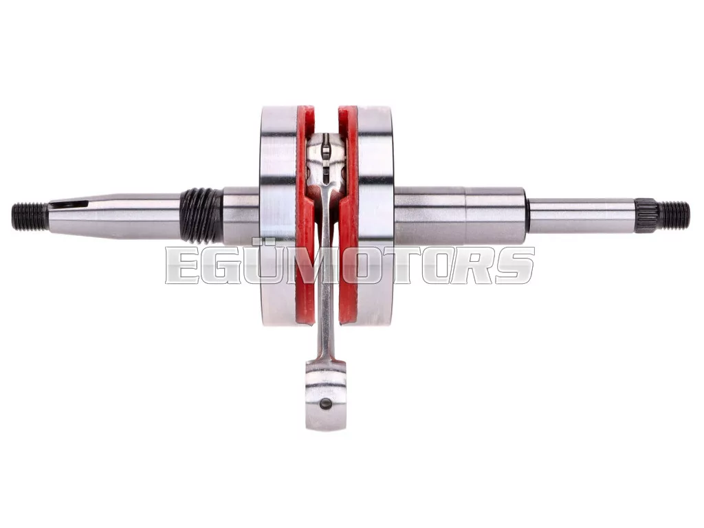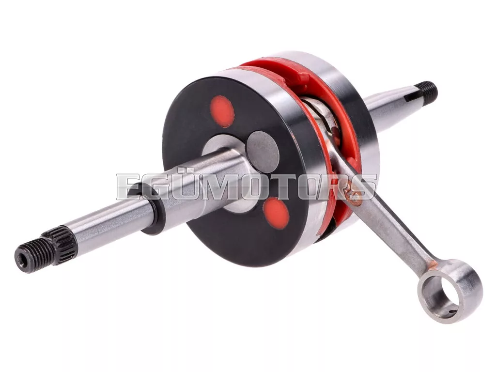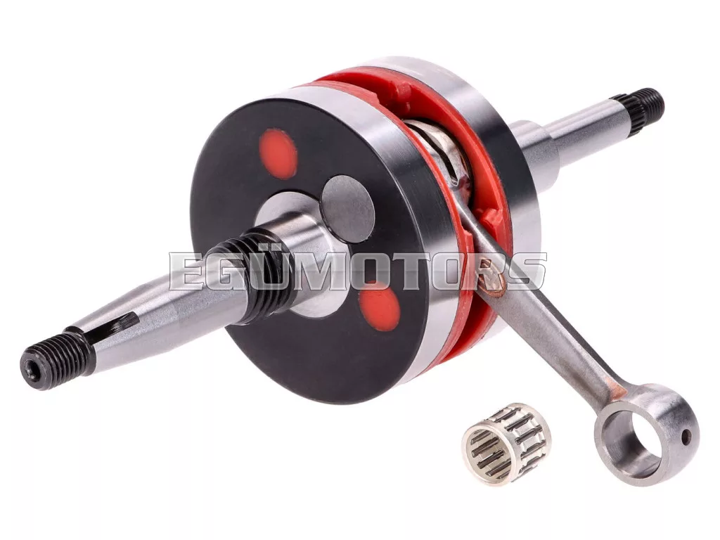 Ez a nagy tömegű HPC verseny főtengely megnöveli az előtömörítést a forgattyúsházban a jobb hengerfeltöltés érdekében. A megnövekedett tehetetlenség javítja a teljesítményt, és a motorerő a magasabb fordulatszám-tartományba tolódik. A főtengely műanyag betétes kialakítása csak kis mértékben növeli a tömeget az eredetihez képest, így ideális 50cc motorokhoz.