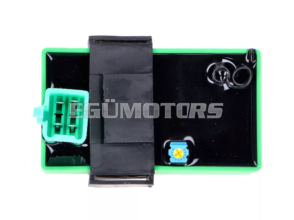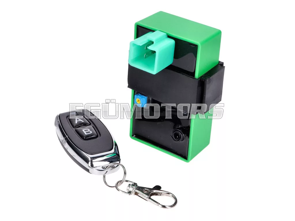 Az eredeti Dell'Orto ECU megmarad, csak a sebességváltó kerül csatlakoztatásra a sebességérzékelő és az ECU közé. A beszerelés után a robogó motorfordulatszáma a CDI modulon található állítócsavarral változtatható, így a robogó végsebessége a kívánt értékre állítható. A távirányító segítségével kényelmesen válthatunk a korlátozott és korlátlan mód között az „A” vagy „B” gomb kiválasztásával.