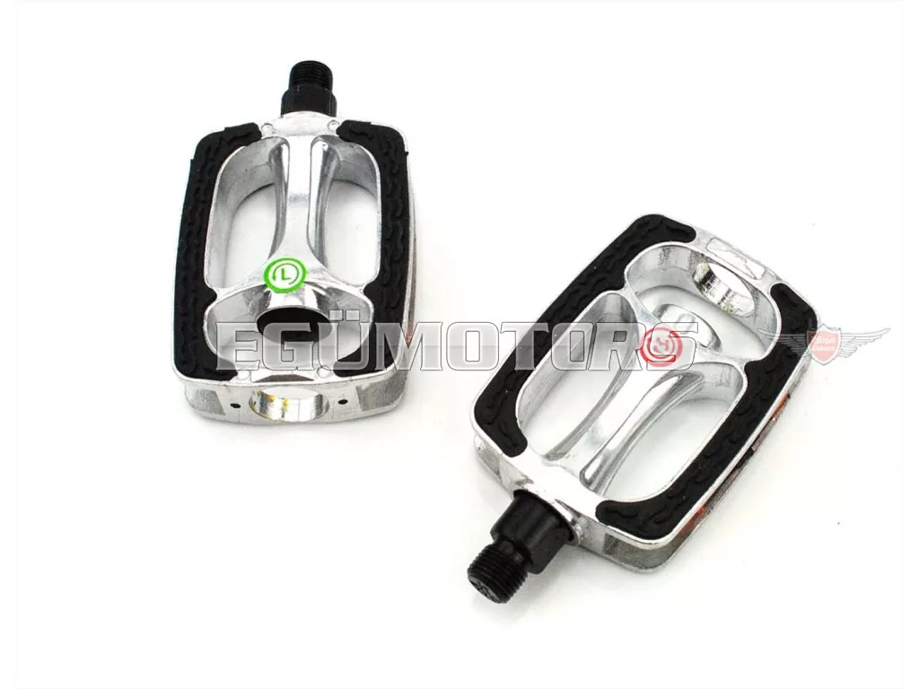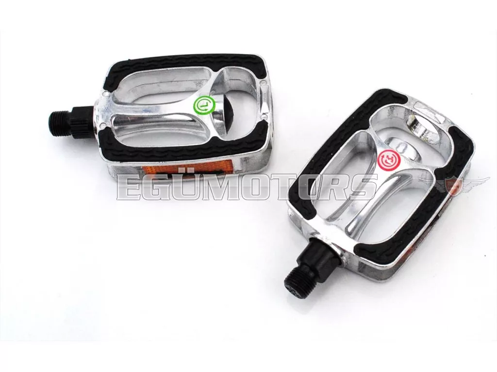 Egy pár pedál, alkalmas mopedekhez, például Zündapp, Kreidler, Hercules, Puch, KTM, DKW, Rixe, stb. modellekhez.