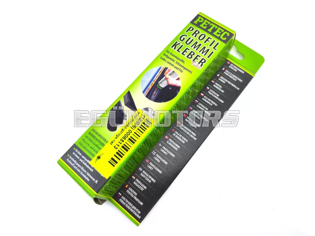 A PETEC profilgumi ragasztó egykomponensű, hőálló kontaktragasztó, amely alkalmas gumi profilok, tömör gumi, habgumi, természetes gumi, bőr, vászon, filc, kemény PVC és butilgumi beltéri és kültéri ragasztására.