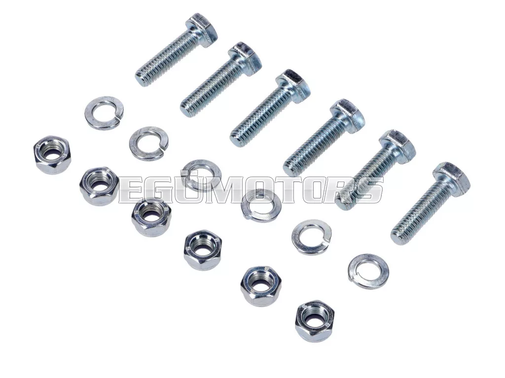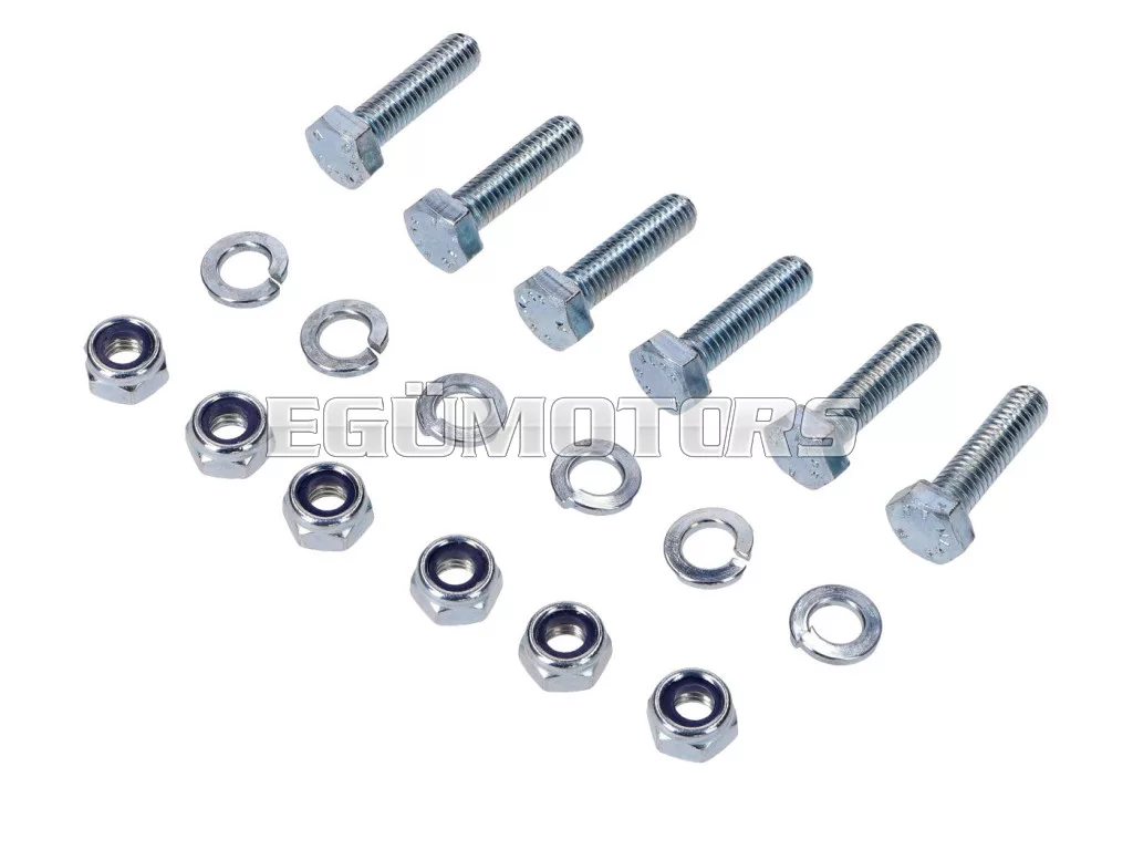 18 db-os lánckerék rögzítő készlet, 6 darab hatszögletű csavarral alátéttel és önzáró anyával.