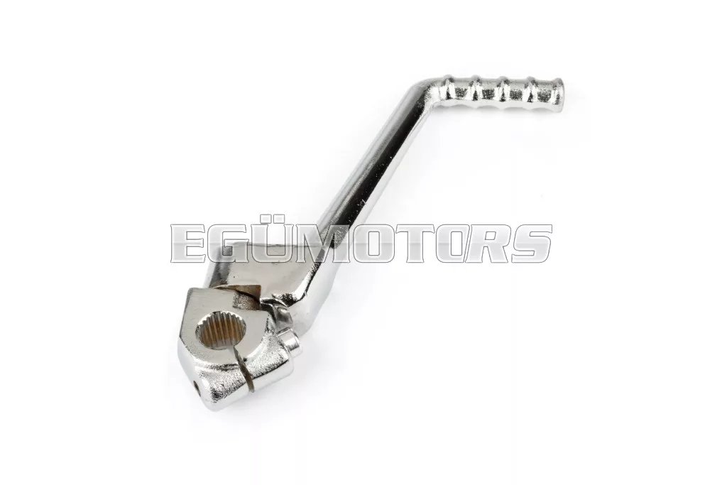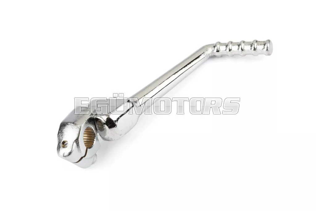 Cserealkatrész az eredeti berúgókar helyére: krómozott acél berúgó 50cc-es motorokhoz, például Derbi Senda, Gilera SMT, Aprilia SX és számos más, Derbi motorral szerelt motorkerékpárhoz.